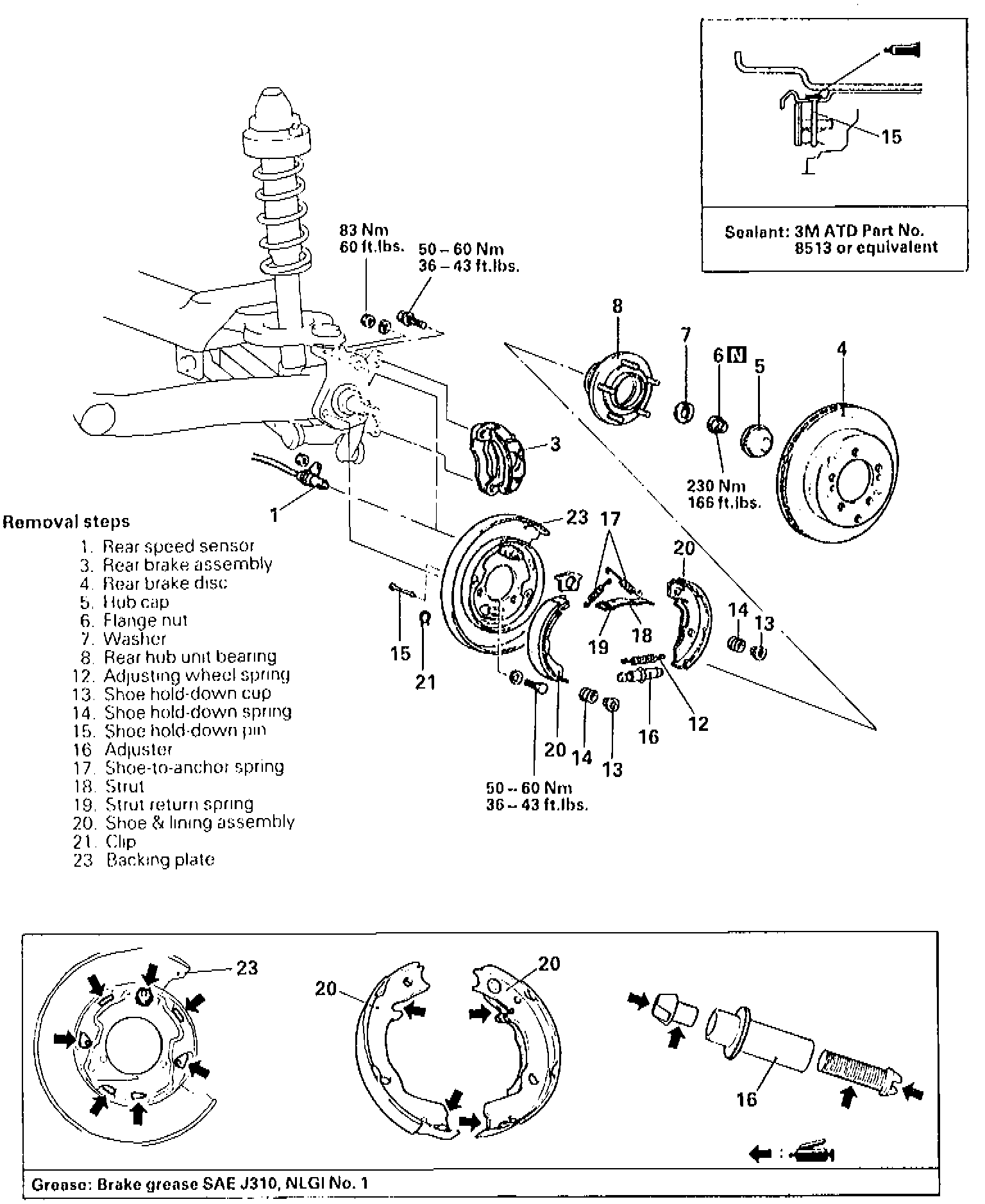 1. Raise and support vehicle, then remove rear wheels.2. Remove rear disc caliper from adapter as outlined under Brake Pad.