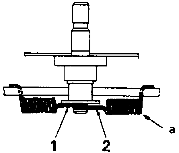 a. Install shoe on anchor spring, Fig. 9. Each shoe to anchor spring has a unique spring load and spring marked "a" is painted for identification. Figure shown is for left wheel.