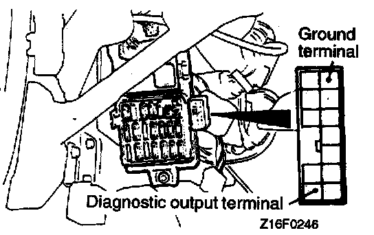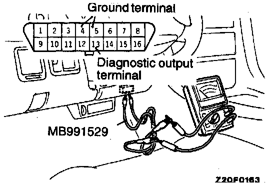 (1) Connect an analog voltmeter across the diagnostic output terminal and ground terminal of the data link connector.