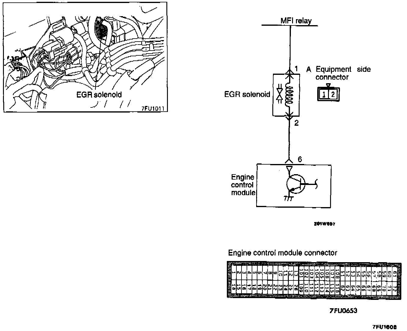 (4) Apply a vacuum and check for air-tightness when voltage applied directly to the EGR solenoid and when the voltage is discontinued.
