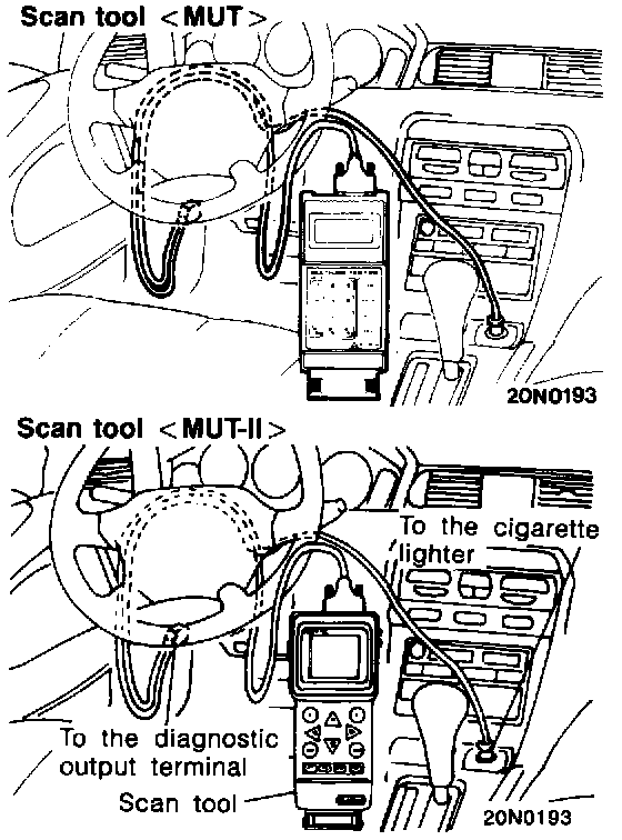 1. Connect a voltmeter between terminal for "A" and terminal for ground to the diagnosis connector.