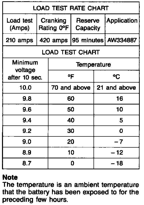 5. If the voltage is not maintained at the minimum voltage in the LOAD TEST CHART throughout the test, the battery should be replaced.