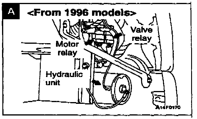 4. Early 3000GT hydraulic units may exhibit moisture contamination which usually shows up as a locked up motor, DTC # 52 Motor Relay". The HU must be replaced.
