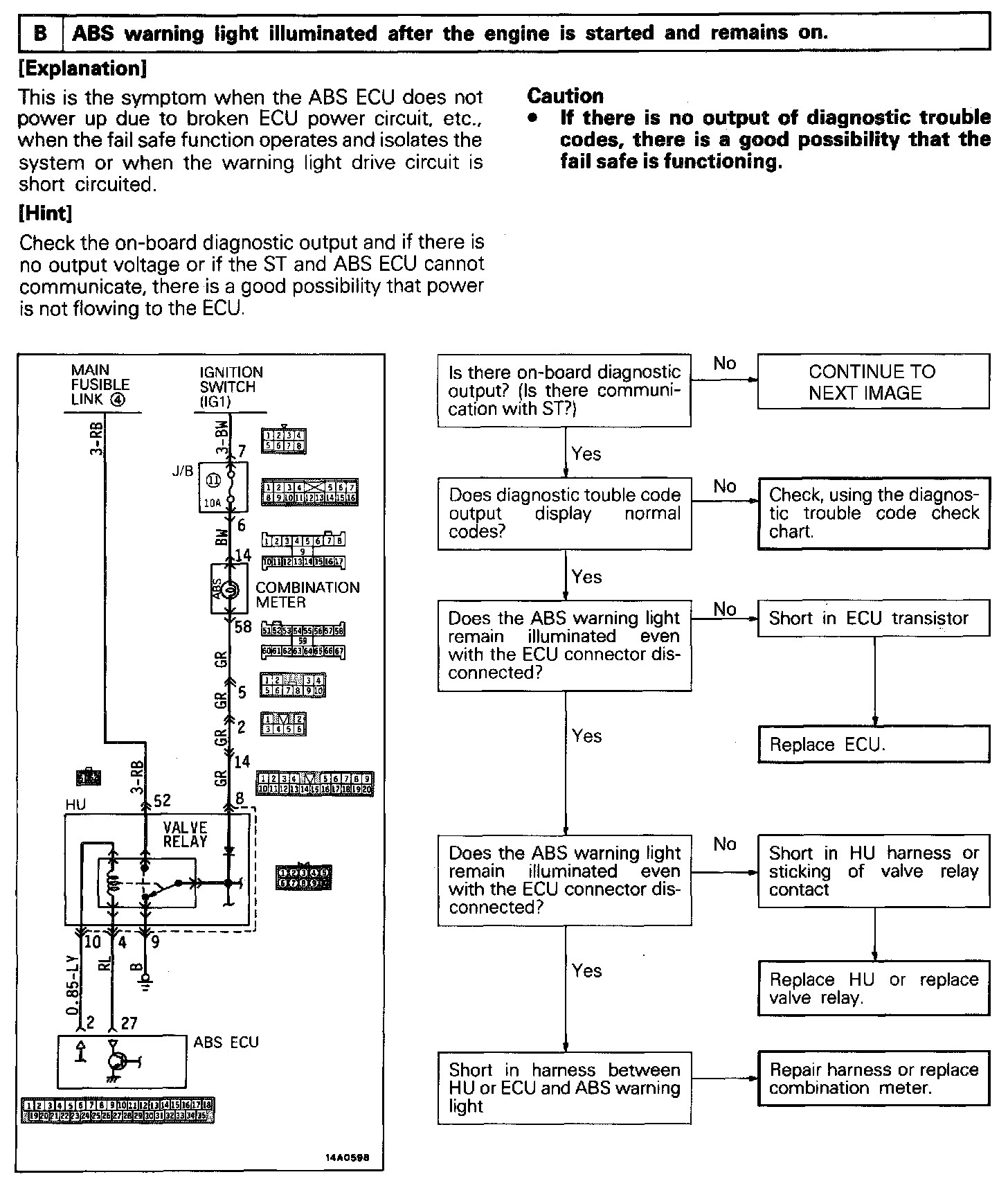 B - ABS Light Remains on After the Engine Is Started
