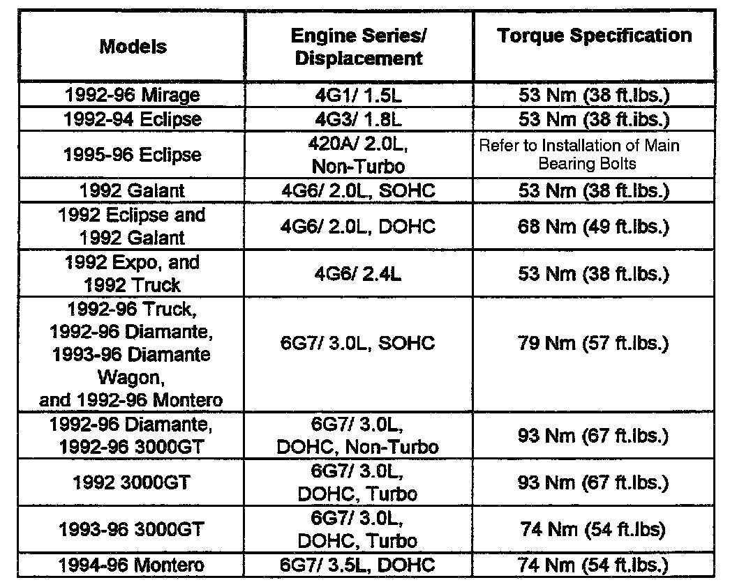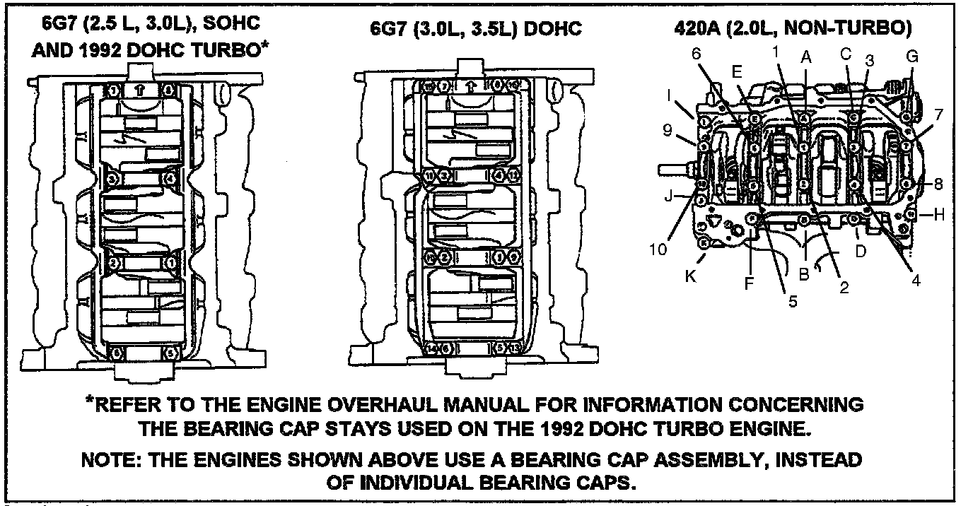 ^ 1992-96 Truck, 1992-96 Diamante, 1993-96 Diamante Wagon, 1992-96 3000GT, and 1992-96 Montero, 6G7 (3.0L) (Use bolt tightening sequence chart.)