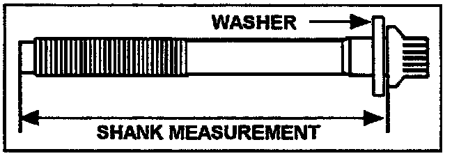 Before reusing an elastic bolt, measure its shank length. The shank measurement extends from the tip of the threads to the shoulder of the bolt head (NOT to the shoulder of the washer). If the specified shank measurement is exceeded, the bolt must be replaced.