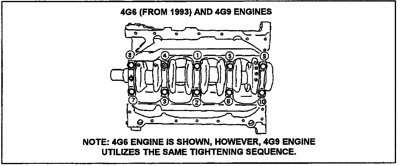 Tightening Sequences for Non-Elastic Main Bearing Bolts (Engines not shown in the chart DO NOT have a specific main bearing bolt tightening sequence.)