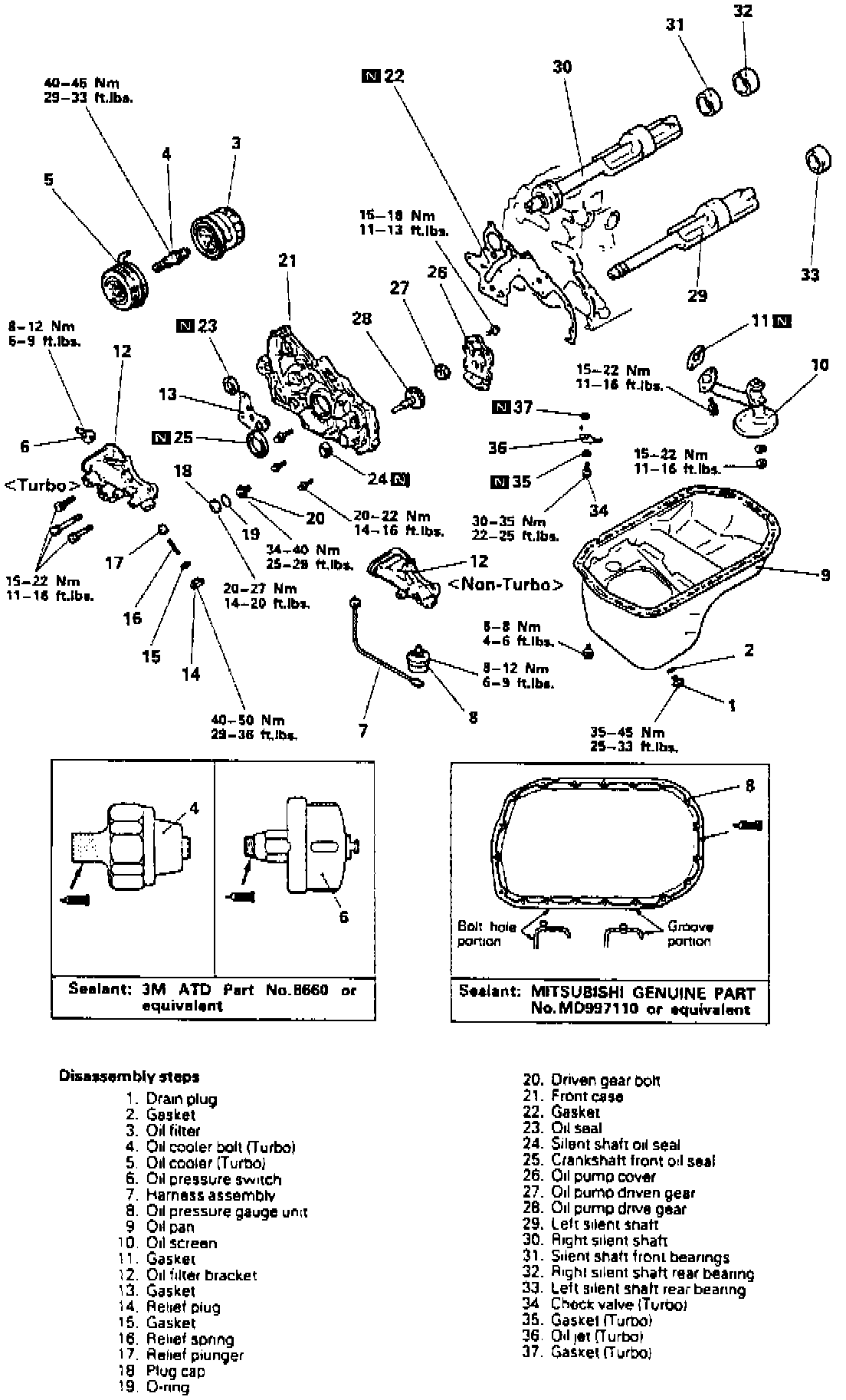 1. Position a suitable screwdriver between oil pan and cylinder block and slide along groove to remove.