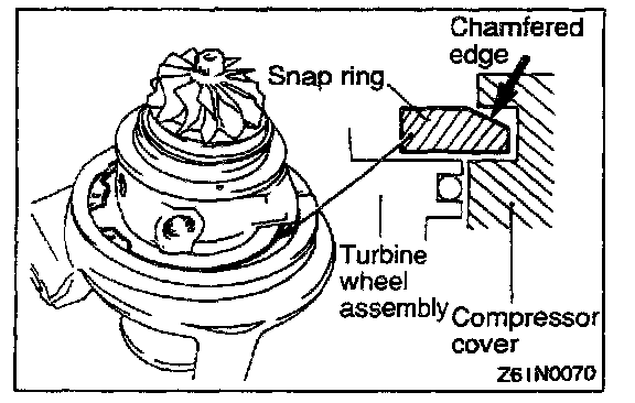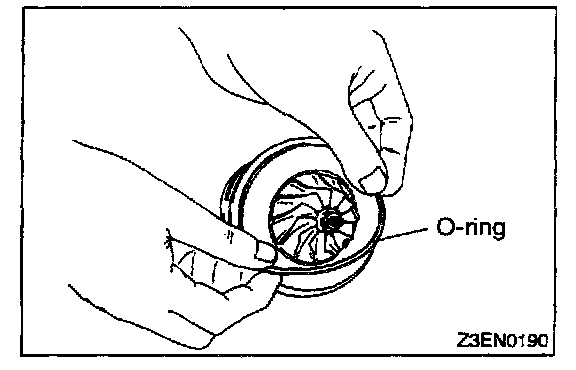 1. Apply a light coat of engine oil to a new O-ring and fit in the turbine wheel assembly groove.