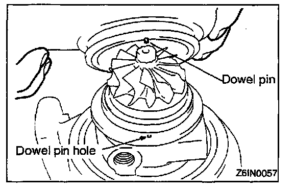 1. Install the turbine wheel assembly to the compressor cover while aligning the dowel pin with the dowel pin hole.