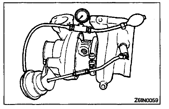 CAUTION: Do not apply a pressure of more than 85 kPa (12.4 psi) to the actuator. Otherwise, the diaphragm may be damaged. Never attempt to adjust the turbocharger waste gate valve.