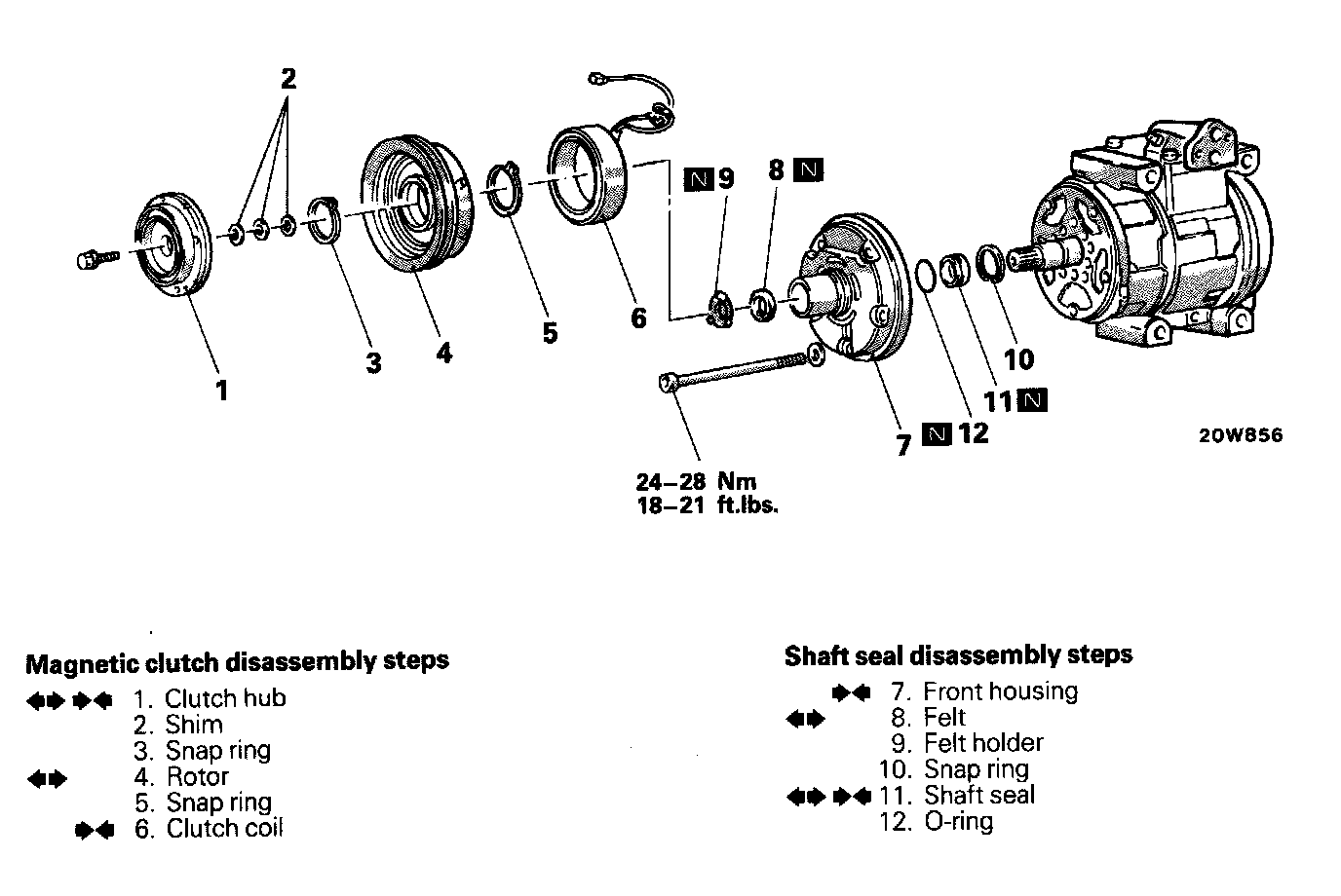 (1) Fix the compressor with a vise. At this time, the rear housing of the compressor must be in contact with the vise.