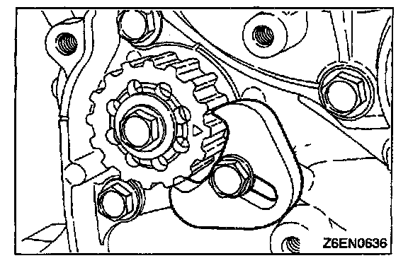 NOTE: Step (4) is performed to ensure that the oil pump sprocket is correctly positioned with reference to the counterbalance shafts.