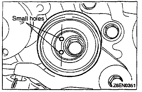 1. Install the tensioner pulley in such direction that its two small holes are arranged vertically.