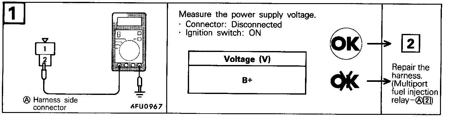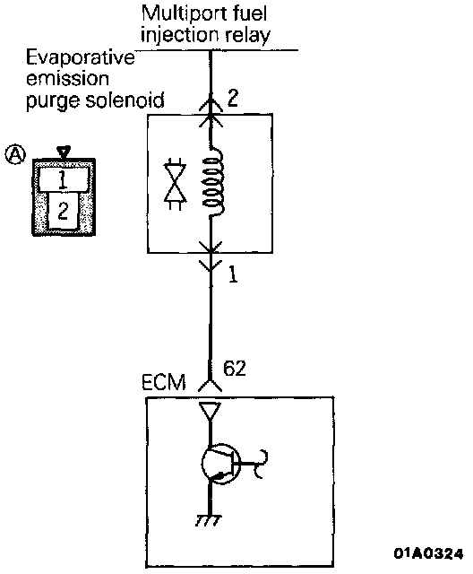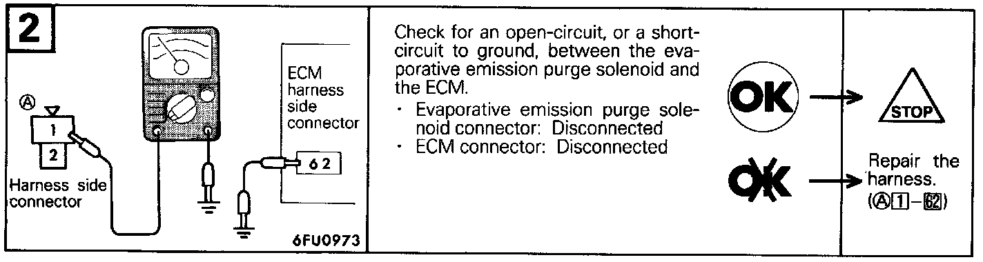 4. Apply a vacuum and check for air-tightness when Voltage applied directly to the evaporative emission purge solenoid and when the Voltage is discontinued.