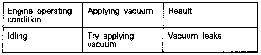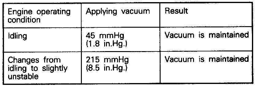 3. Under the engine conditions shown below. check by applying vacuum from a hand vacuum pump.