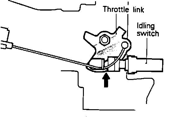 5. Confirm that the throttle lever stopper touches the idle position switch.