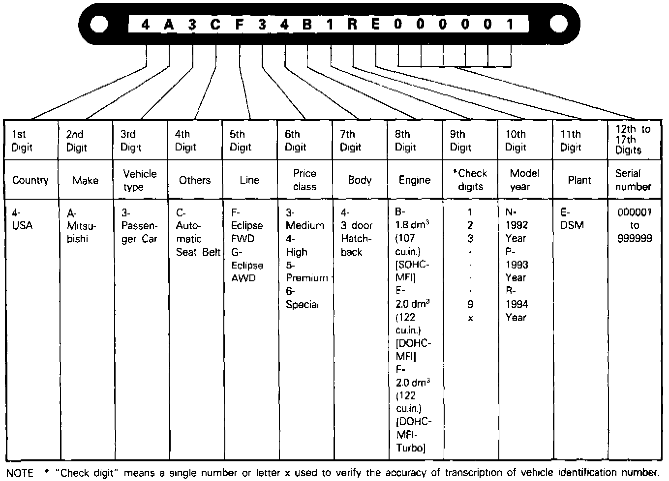 All vehicle identification numbers contain 17 digits. The vehicle number is a code which tells country, make, vehicle type, etc.