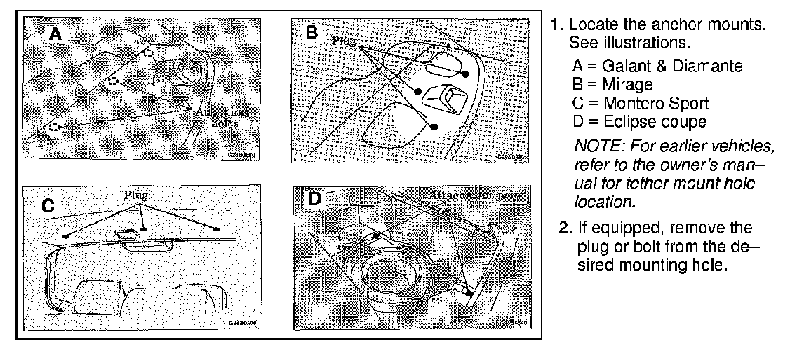 NOTE: Convertibles (3000GT Spyder & Eclipse Spyder) are not required to have upper tether anchor mounts.