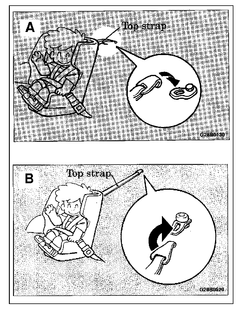 WARNING! DO NOT use the top strap if the child safety seat is used in the front passenger seat.