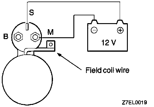 1. Disconnect field coil wire from M-terminal of magnetic switch.
