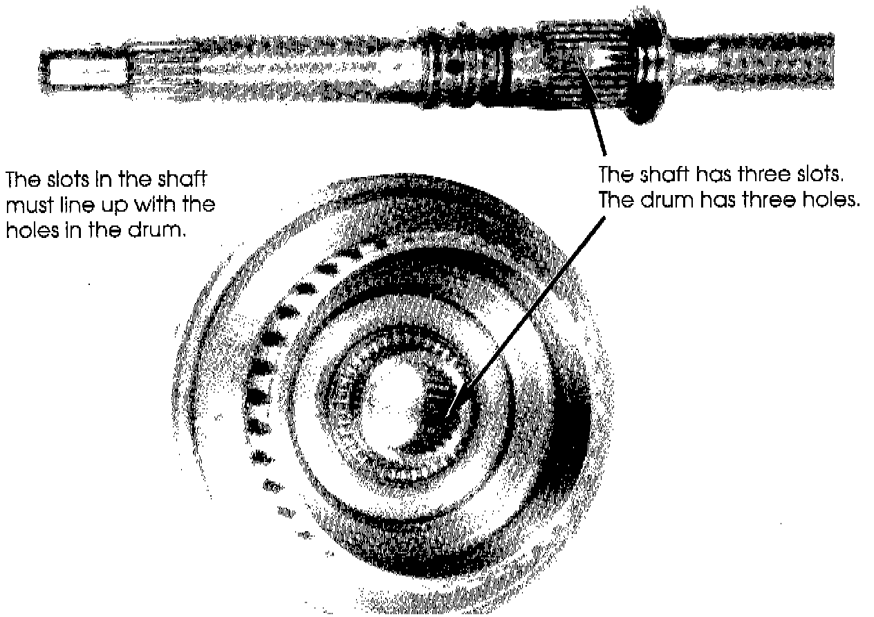 A delayed forward engagement can be the result of a mis-assembly of the rear clutch drum and input shaft. 1989 and later KM175 series transaxles (including the KM176, 177, F4A21, F4A22 F4A23, F4A33, W4A32 and W4A33) use three slots in the turbine shaft to feed the three holes in the rear clutch drum. It is important that the holes in the drum line-up with the slots on the shaft.