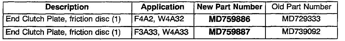 The part numbers for the old-style end clutch plates are superseded to the new part numbers.