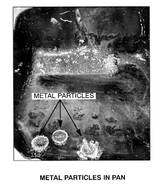 Inspect the quality (color and smell) of the fluid, and check for contaminants (such as metal debris) in the A/T oil pan: