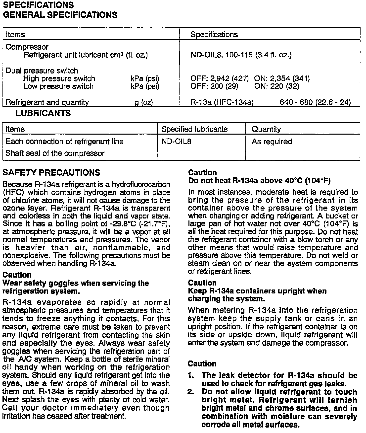 AIR CONDITIONER SERVICE PROCEDURES (R134A) - SERVICE MANUAL REVISION