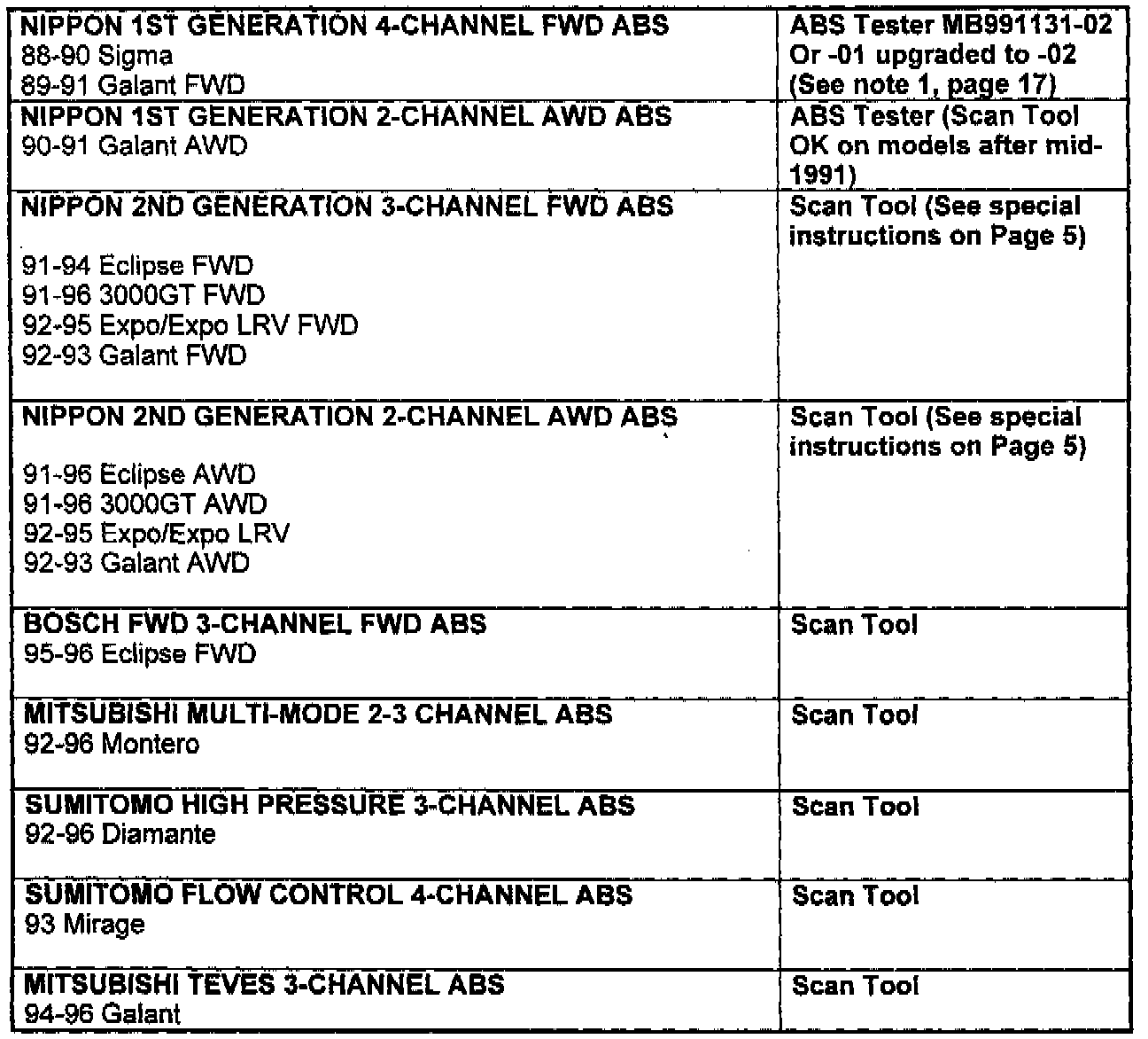 ANTI-LOCK BRAKE SYSTEM DIAGNOSIS TOOL APPLICATIONS