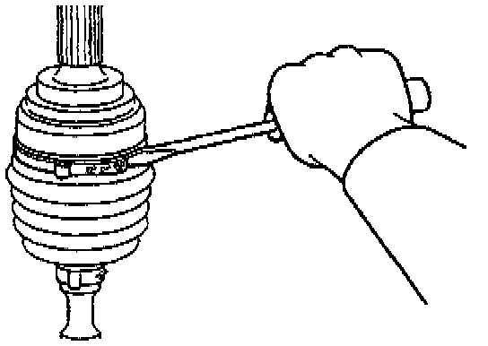 ^ Secure the drive axle shaft in an upright position and hold the clamp securely in the jaws of the tool.