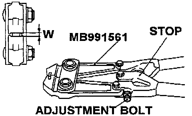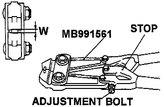 5. Rotate the adjustment screw on the special tool so the clearance stop opening dimension (W on the illustration) is 2.9 mm.
