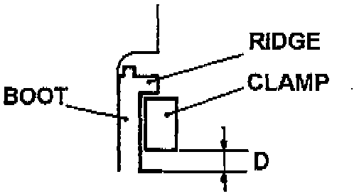 13. Place the large boot clamp so it contacts the ridge at the end of the boot. Make sure there is clearance between the boot and the BJ housing as shown in area (D) of the illustration.