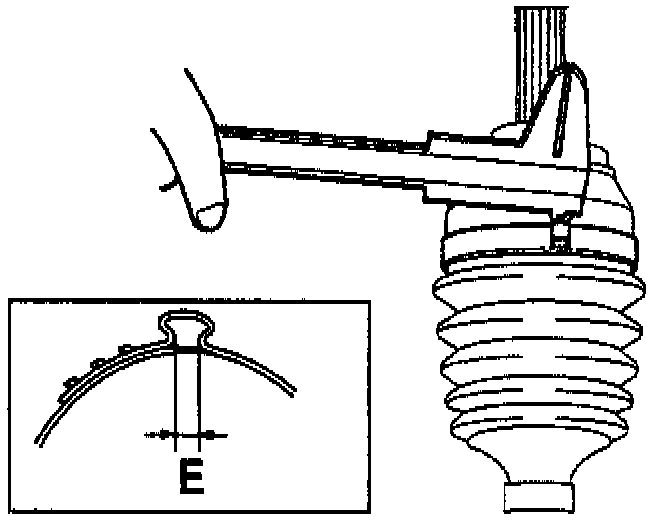 If (E) is less than 2.4 mm remove the clamp, readjust the (W) on the tool as shown in Step 5 using the following formula. Then, install a new clamp repeating Steps 13 and 14.
