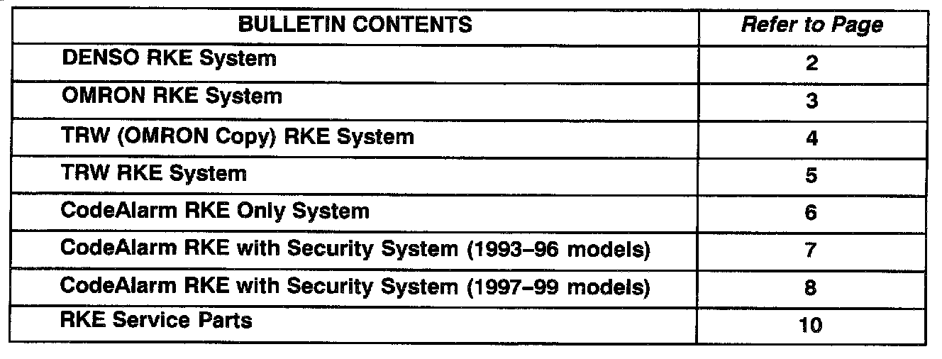Refer to the appropriate heading in this bulletin for RKE service information: