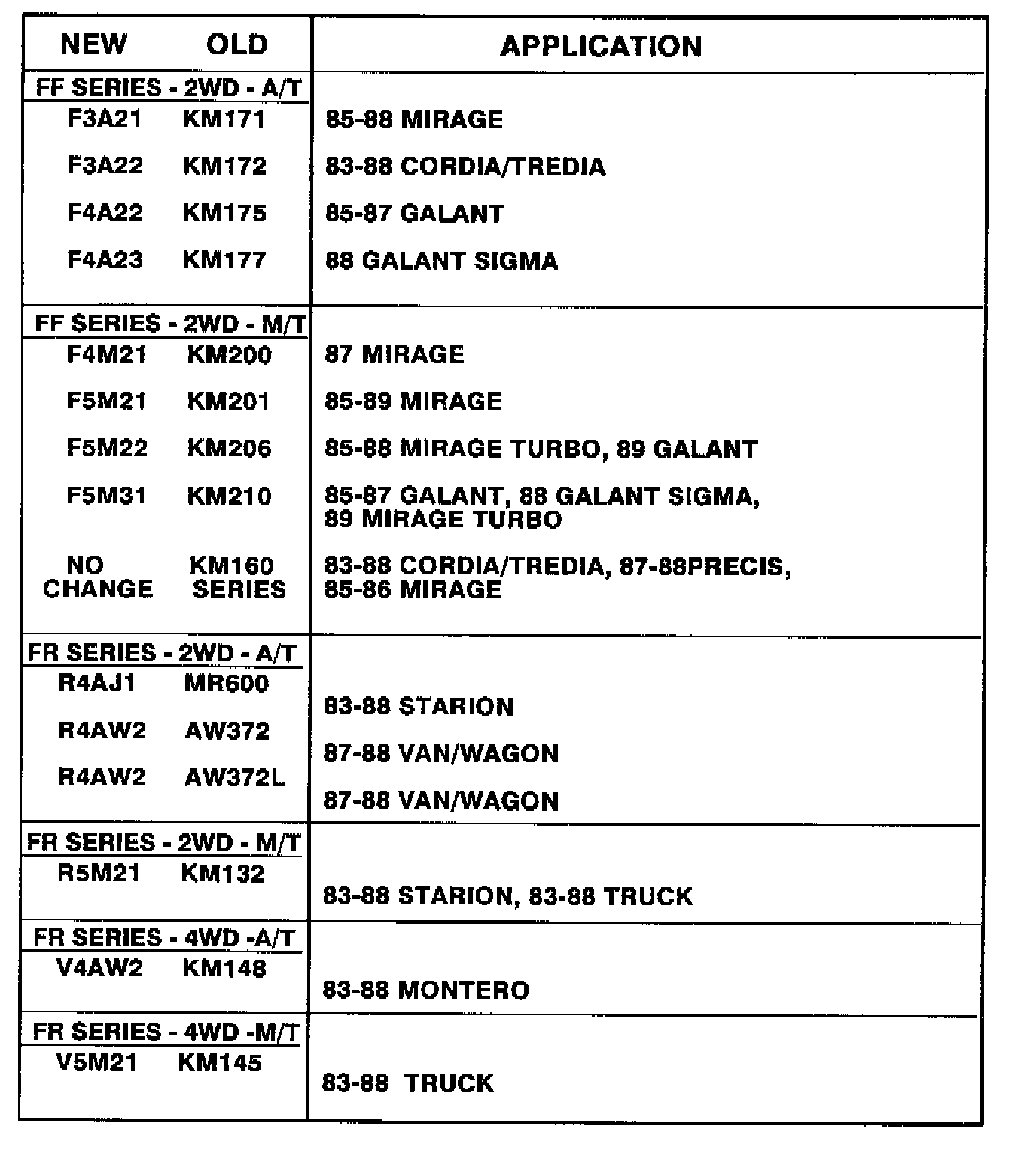 KM160 series transmissions will keep the old identification until 1991.