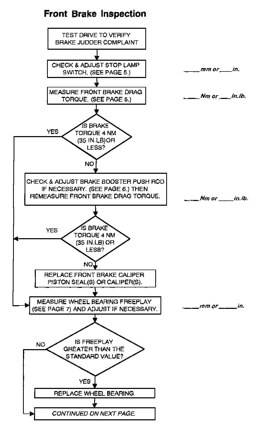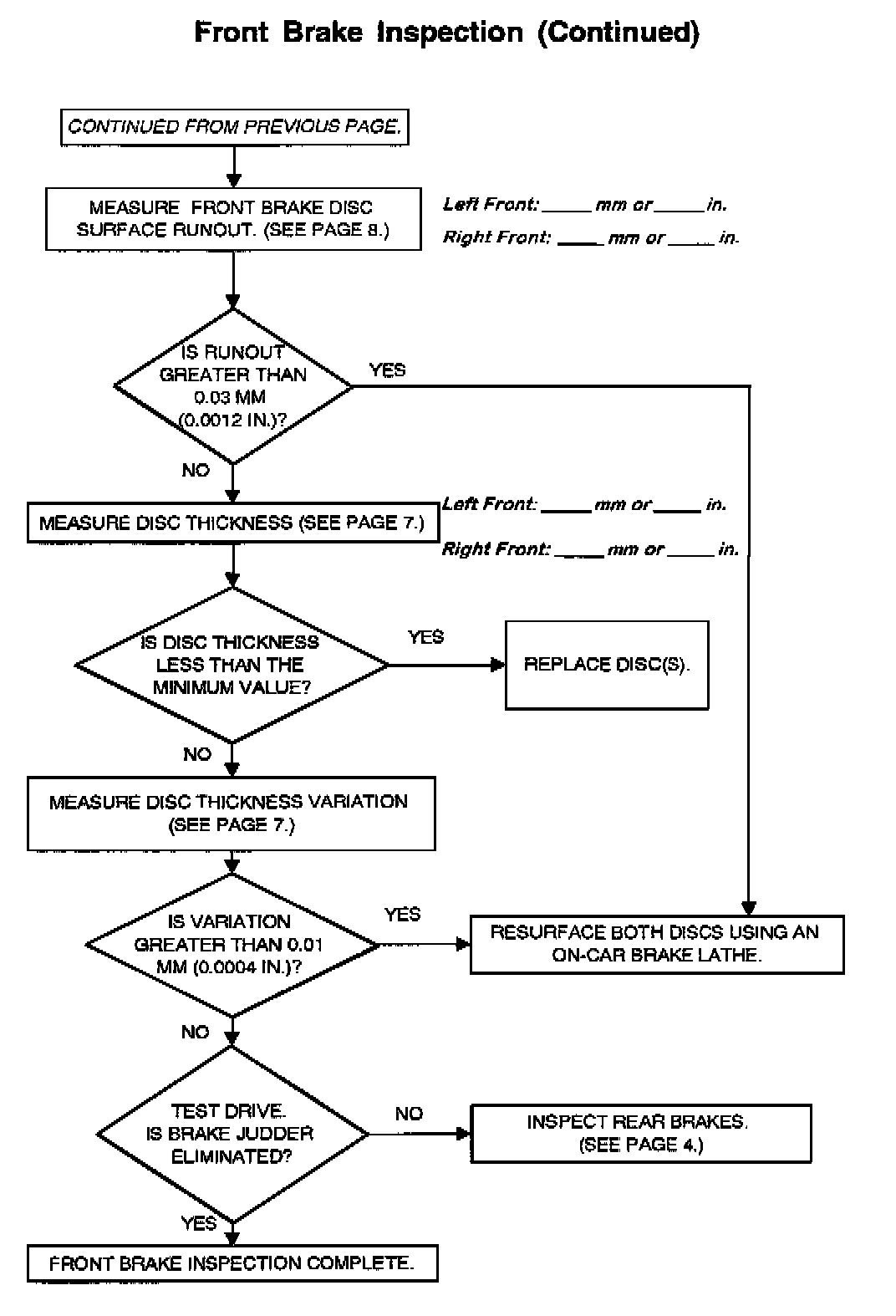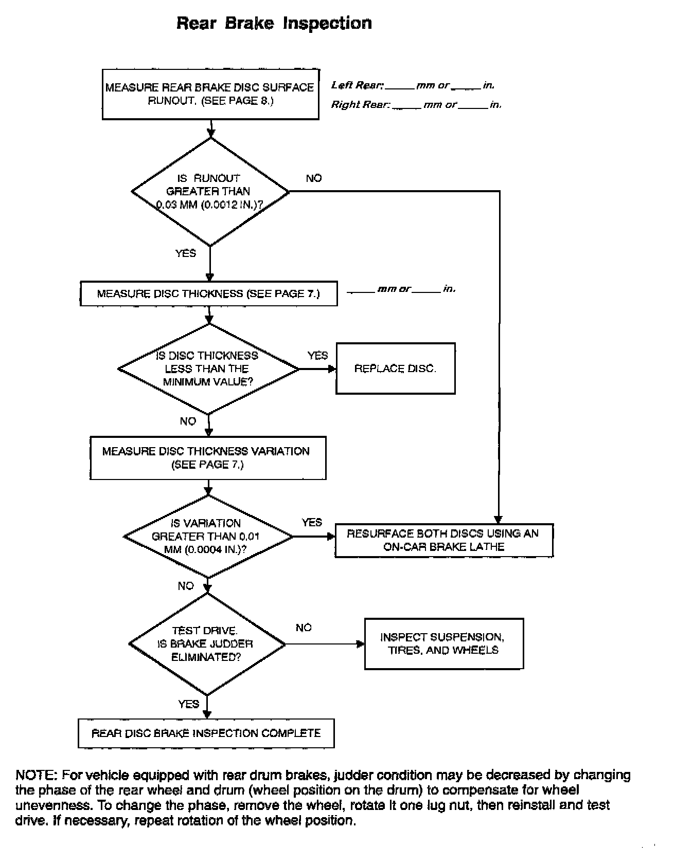 For each vehicle repair to eliminate brake judder, use a copy of the brake inspection charts in this bulletin to record your measurements.
