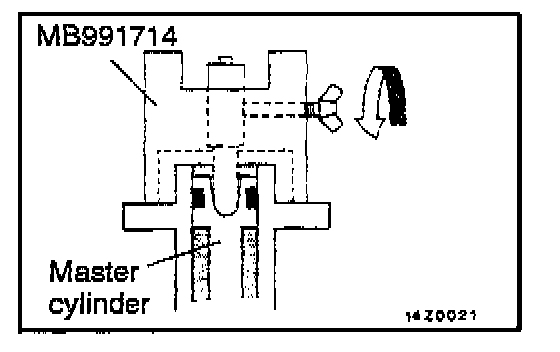 2. Make sure that the shaft of the special tool makes a light contact with the master cylinder piston.