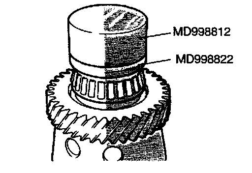 (2) Holding down the pinion shaft, select the spacer of maximum thickness that allows the pinion gear to turn lightly and install it to the shaft.