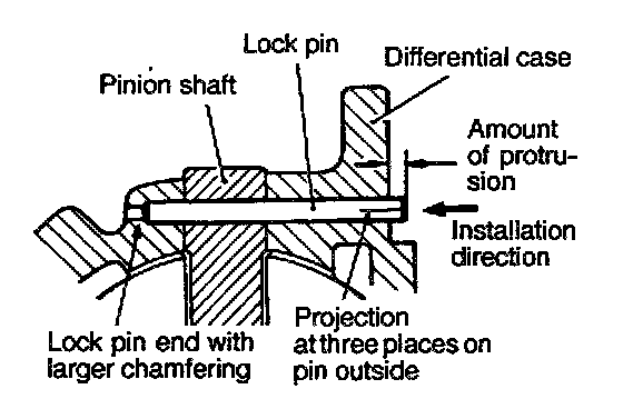 (1) Align the pinion shaft lock pin hole with the case lock pin hole and insert the lock pin.