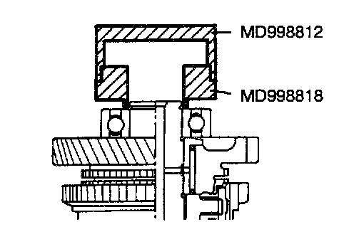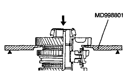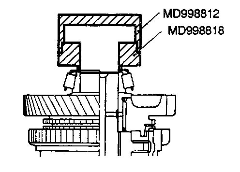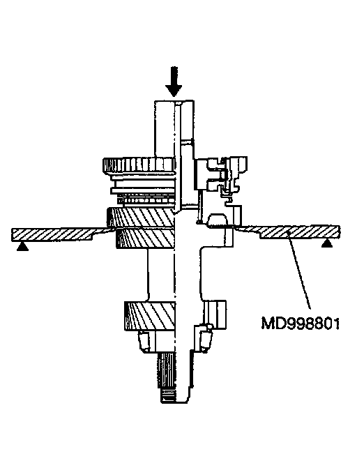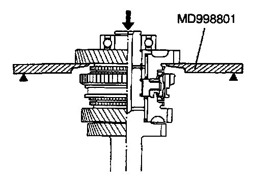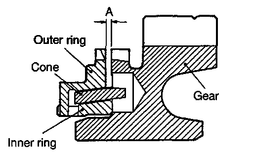 (3) Install the outer ring, inner ring and cone, and press them onto the clutch gear. Check clearance "A", and replace if "A" is below the limit value.