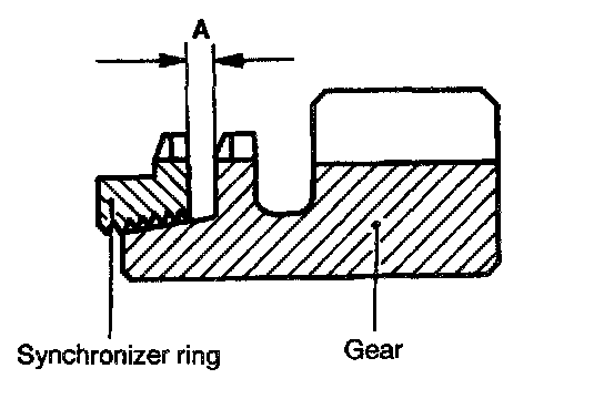 (3) Force the synchronizer ring toward the clutch gear and check clearance "A". Replace if it is out of specification.