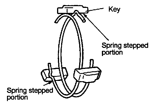 (1) When installing the synchronizer springs, be sure to position each spring with respect to the keys as illustrated.