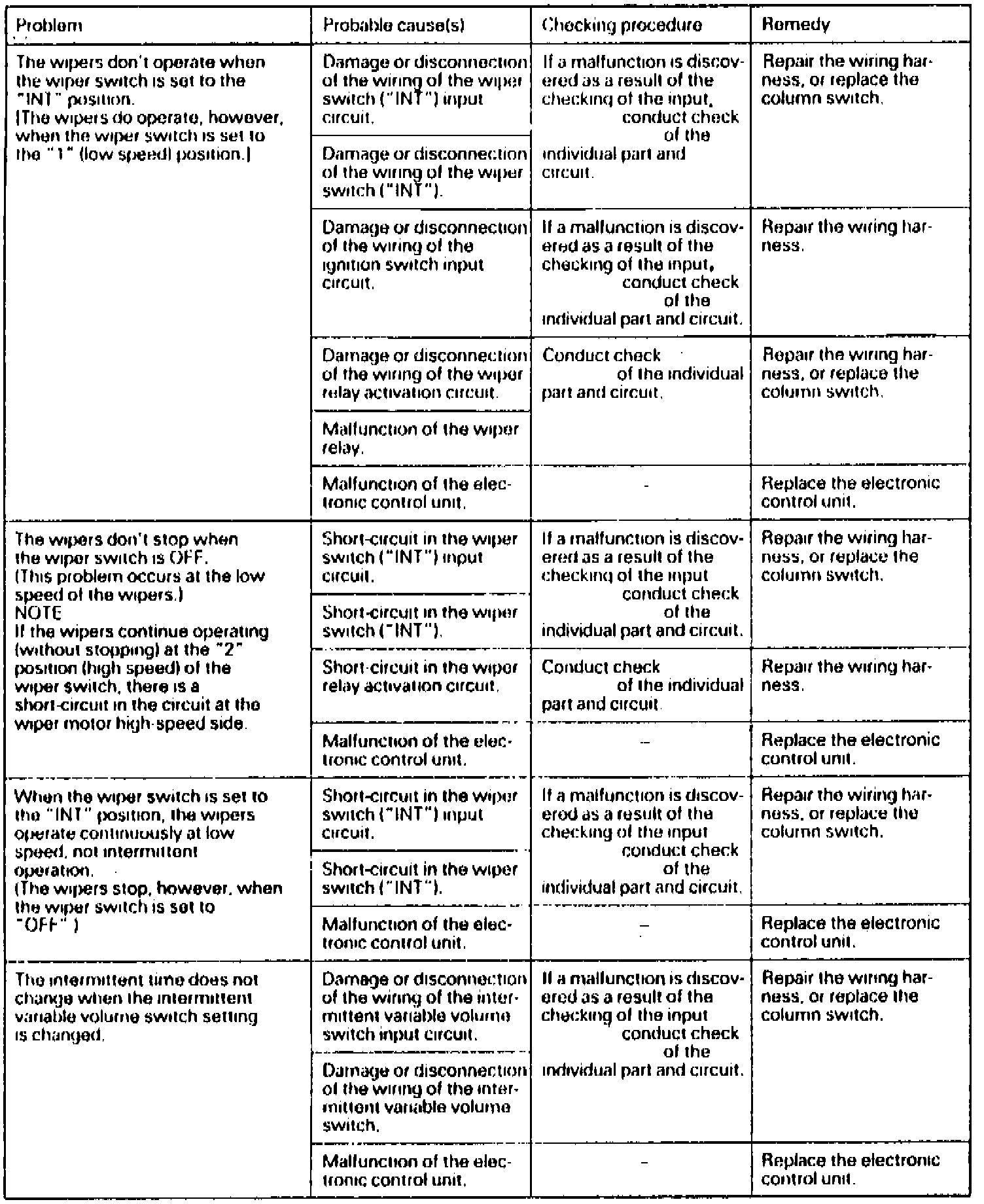 Fig. 1 Wiper System Troubleshooting (Part 2 Of 2):