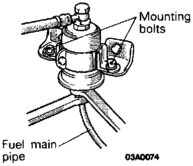 3. Remove the fuel filter mounting bolts, and then remove the fuel filter from the bracket.