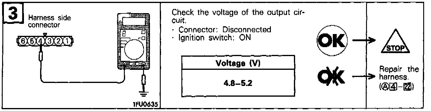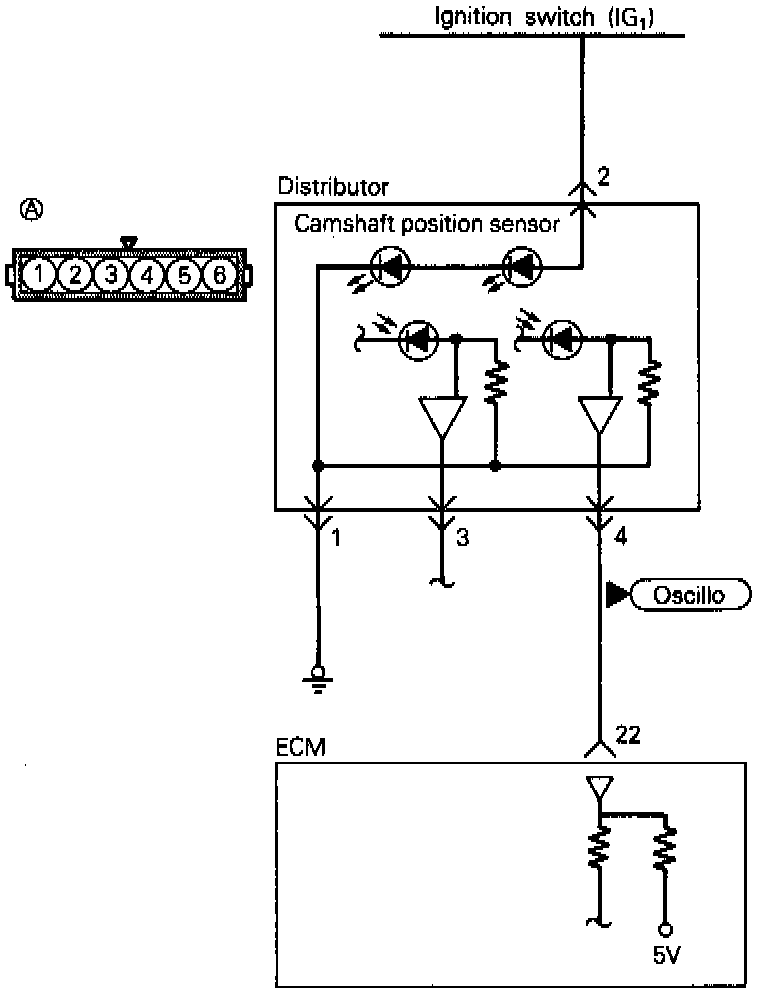 In case of a broken wire or short-circuit in the camshaft position sensor or improper contact in the connector, hard starting, unstable idle or intermittent idle will occur. However, if a wire is broken while the engine is running, it will not result in trouble.
