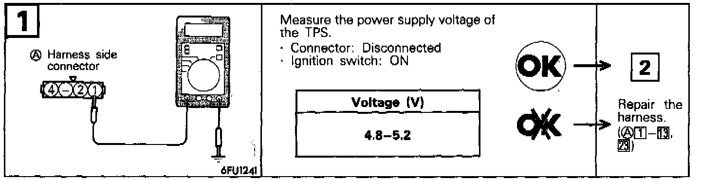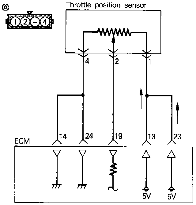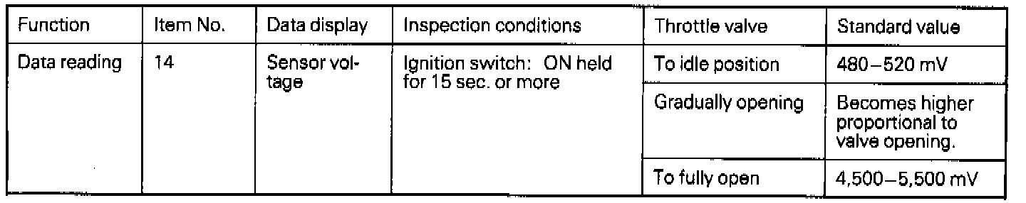 When short-circuit or wire breakage occurs in the throttle position sensor circuit hesitation may occur as well as deceleration shock and/or shift shock in an automatic transmission vehicle.