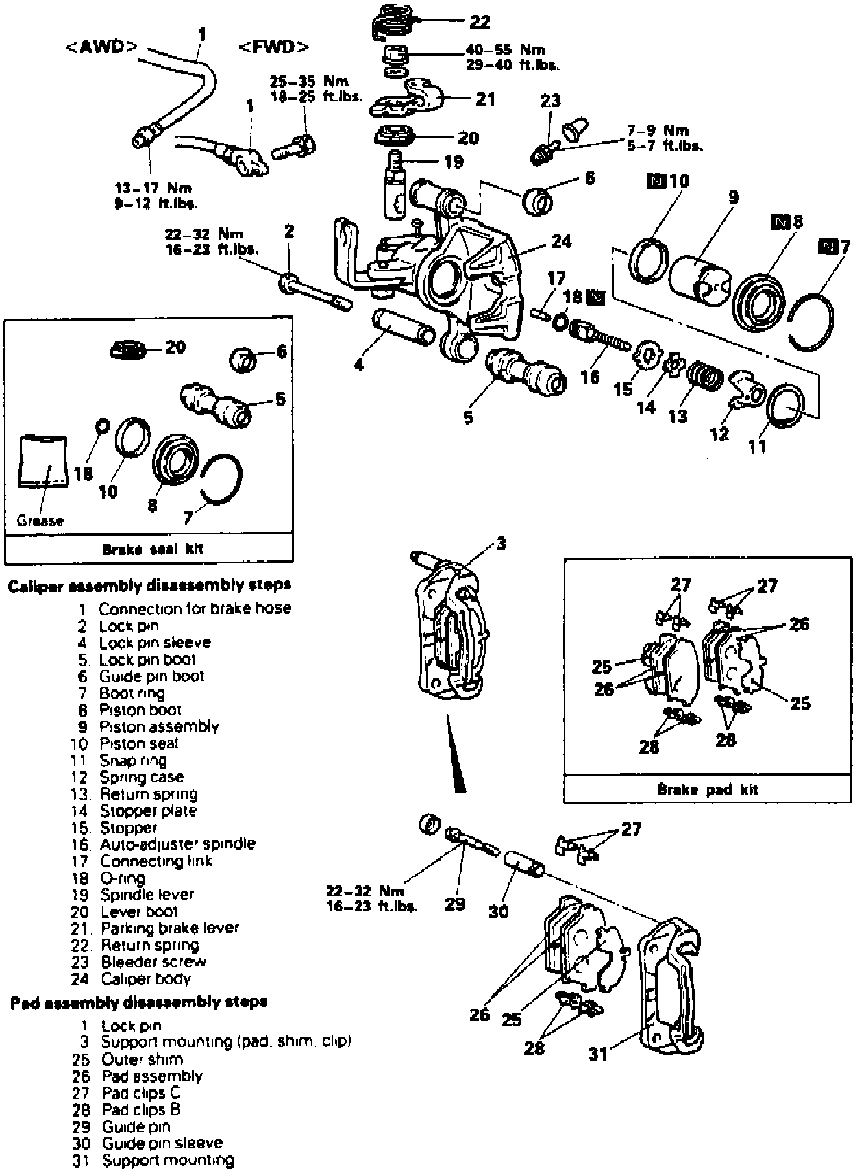 Fig. 4 Exploded View Of Disc Brake Assemblies (AD30P & AD35P Calipers):