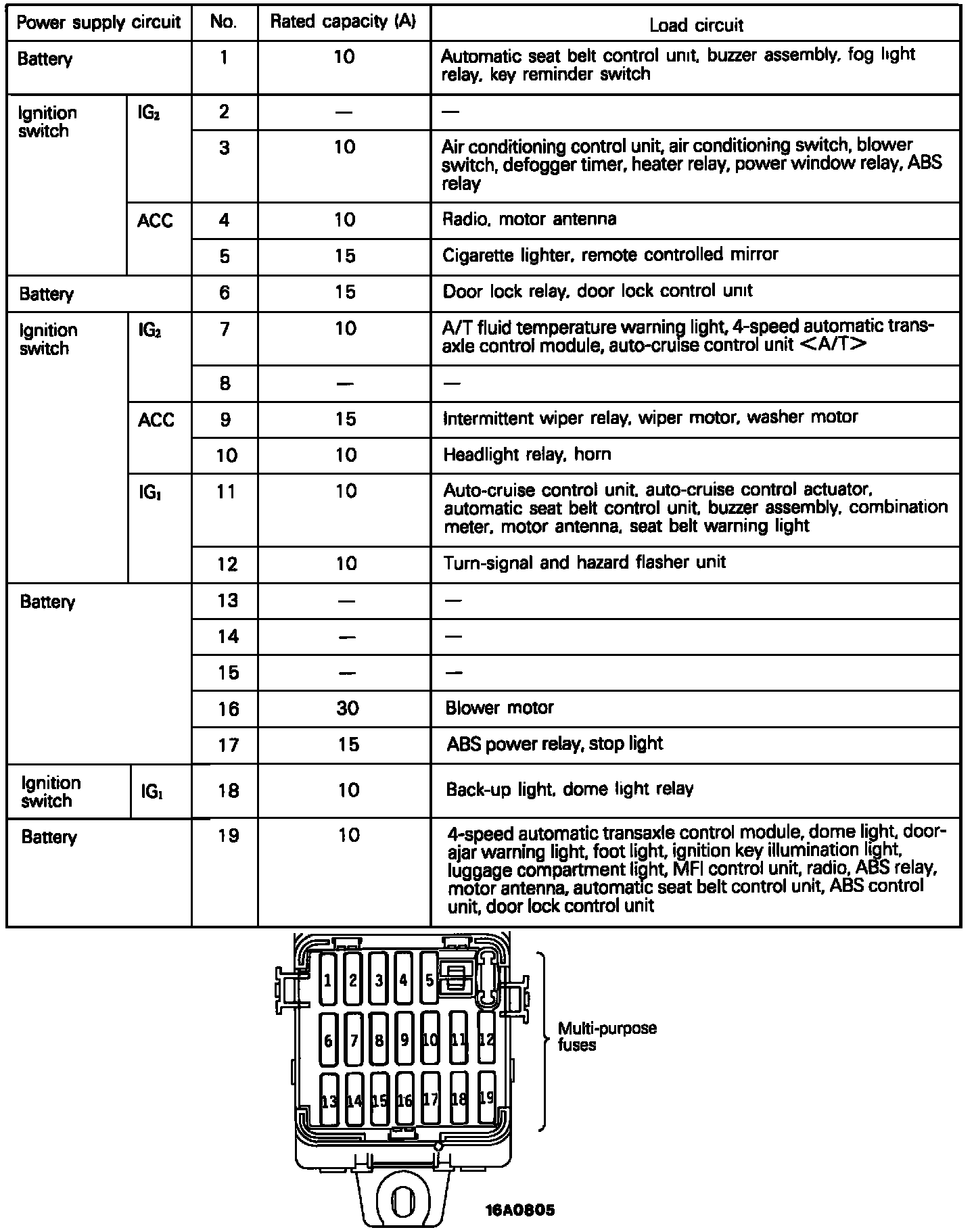 Multi-Purpose Fuses/Inside Junction Block: