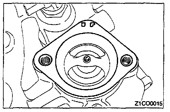 1. Install the water outlet lifting gasket with its "UP" mark facing up (toward the water outlet fitting side).
